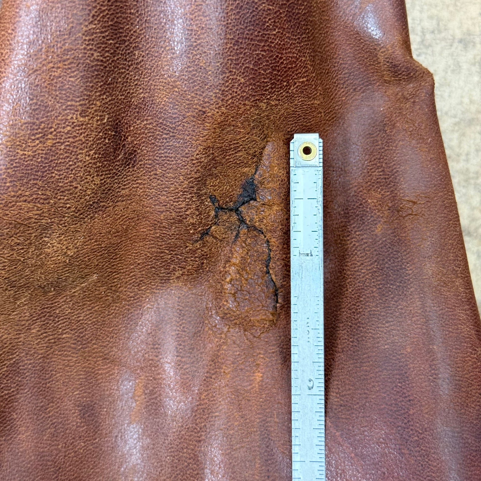 See picture for small 1.5" repair on the right shoulder. Sleeve wool lining has been removed, is present in the chest and back, see photos.