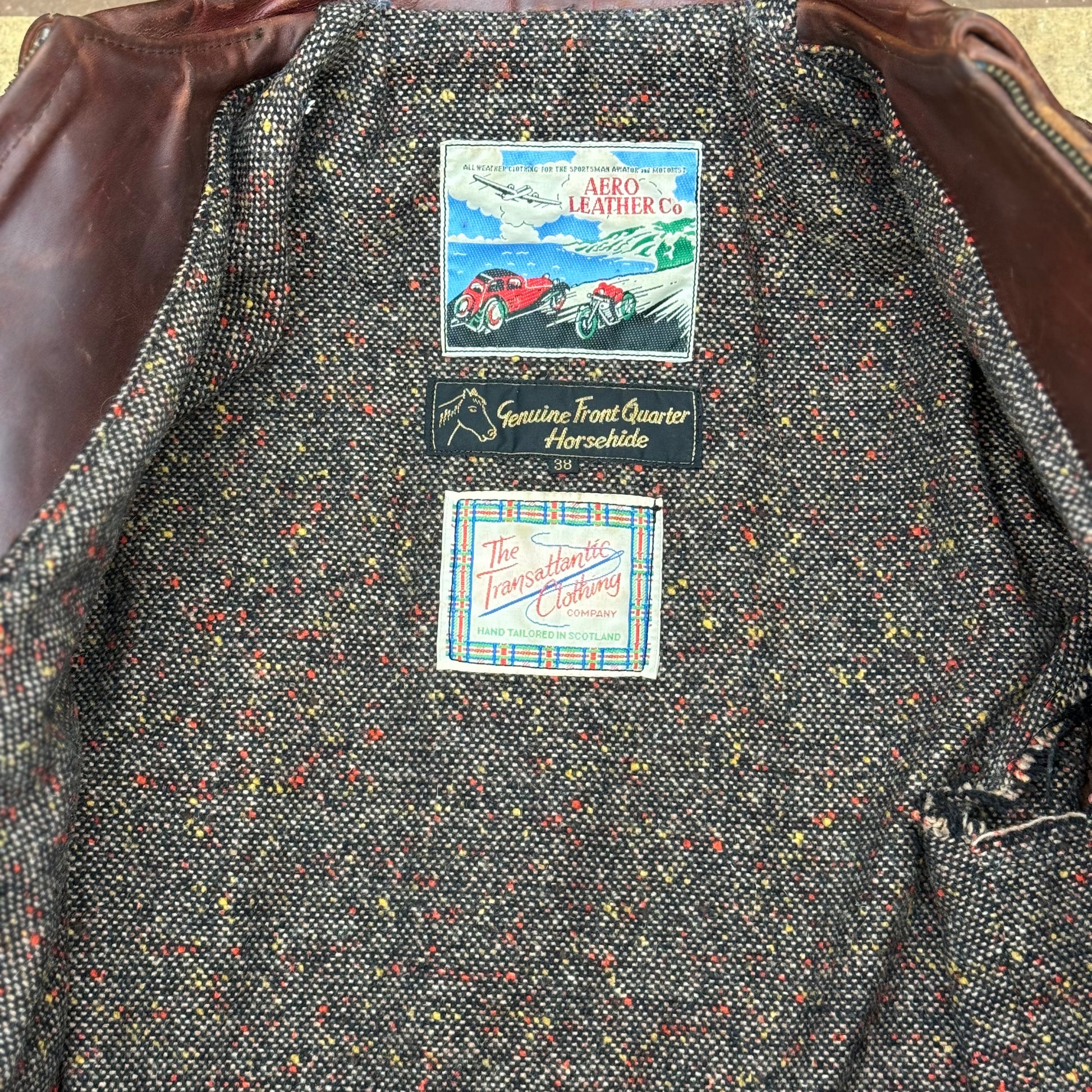 Aero Leather Horsehide Half-Belt Jacket - 1930's Style - Size 38