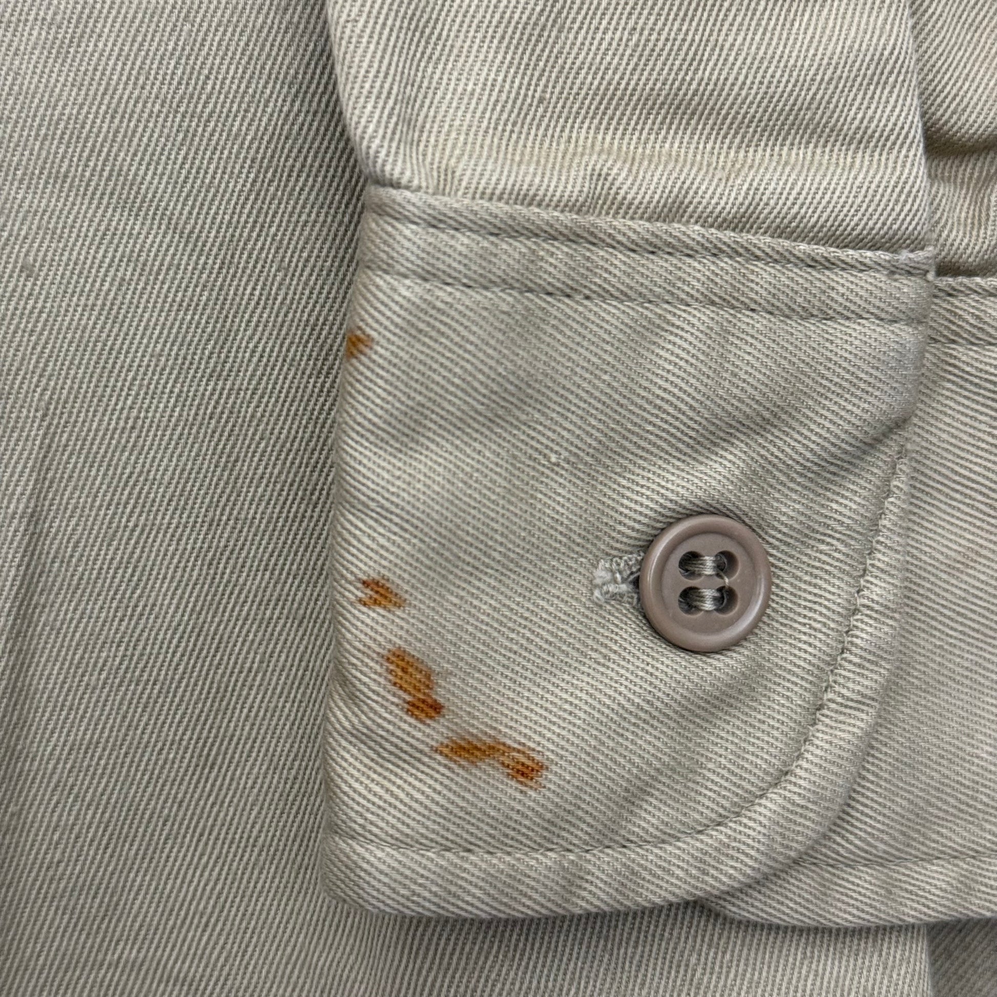 Small imperfections on wrist, sleeve, front waist. Otherwise, very nice pockets and crisp cotton twill.